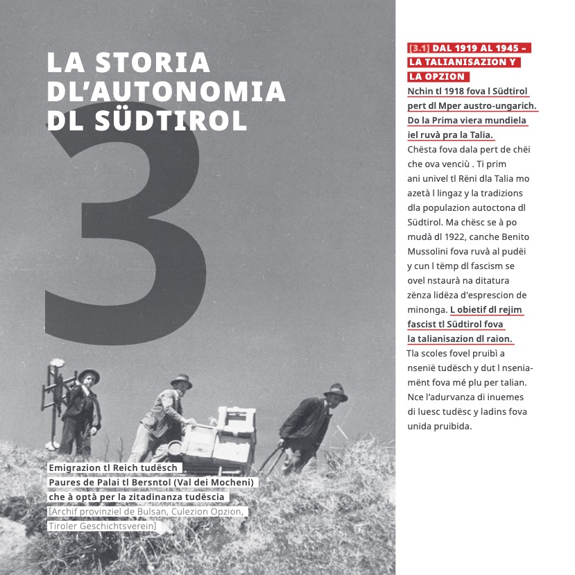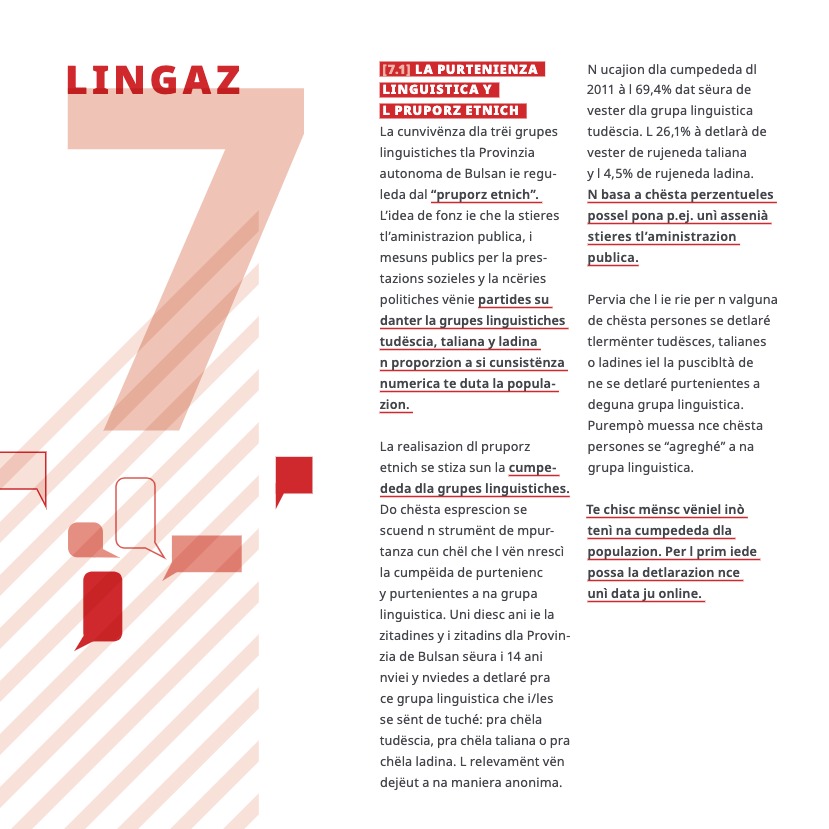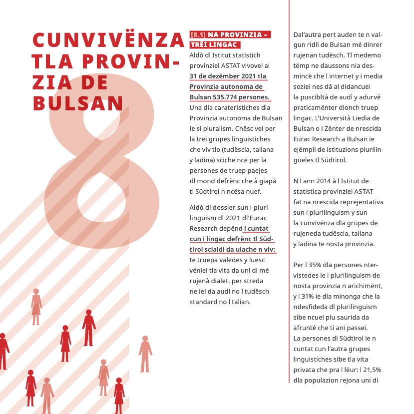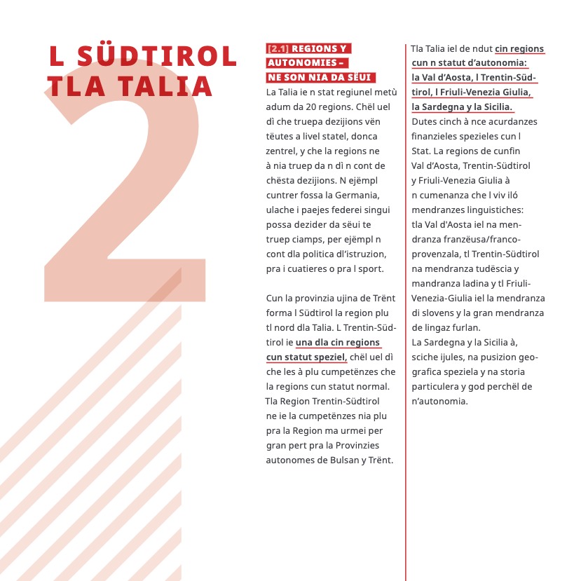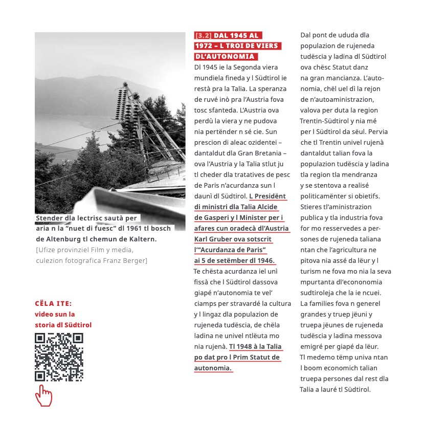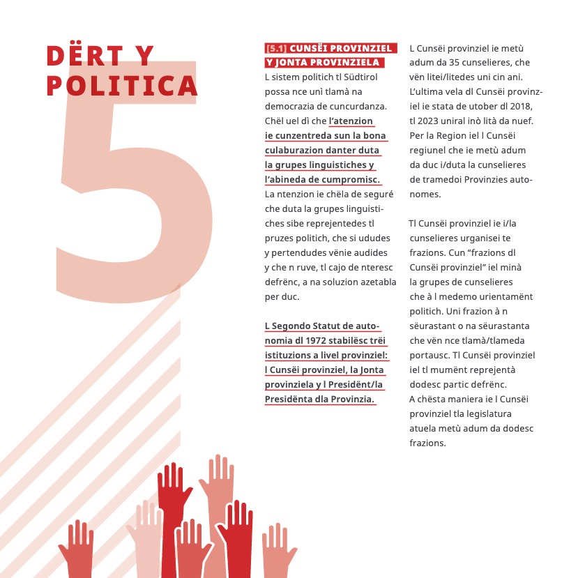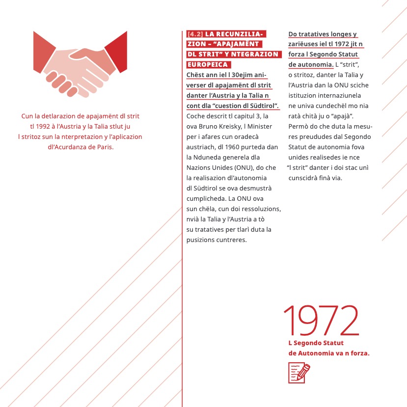 - Per l 50ejim aniverser dl Segondo Statut de autonomia urganisea la Provinzia autonoma de Bulsan n culaburazion cun l Eurac Center for Autonomy Experience y la Fundazion Cassa dl Sparani l cuncors “Cunësces’a ti provinzia?”.