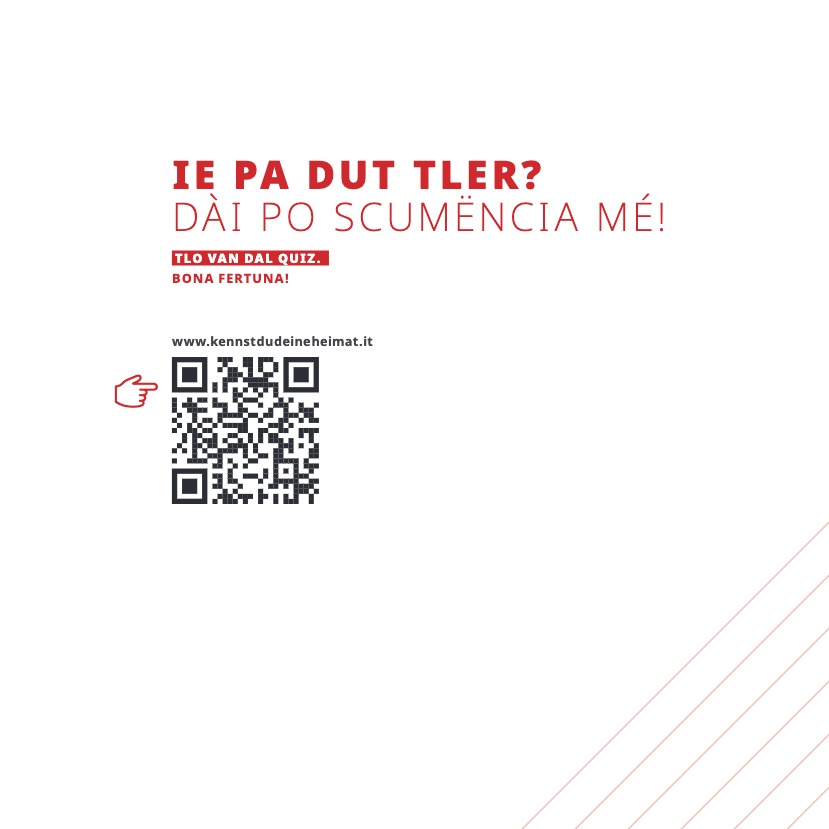 - Chiche uel tò pert al juech da pesć muessa se scrì ite sun la plata www.kennstdudeineheimat.it. Pra l’iscrizion muessel unì dat ju chisc dac: inuem, cuinuem, data de nasciuda, luech dla scola, scola, tlas (p.ej. 3F) y e-mail de cuntat.