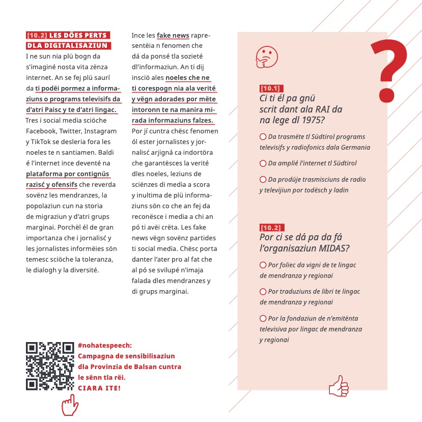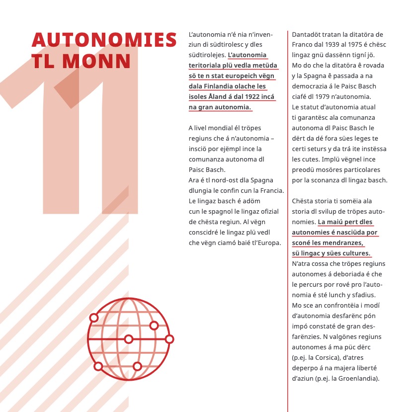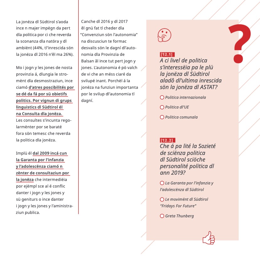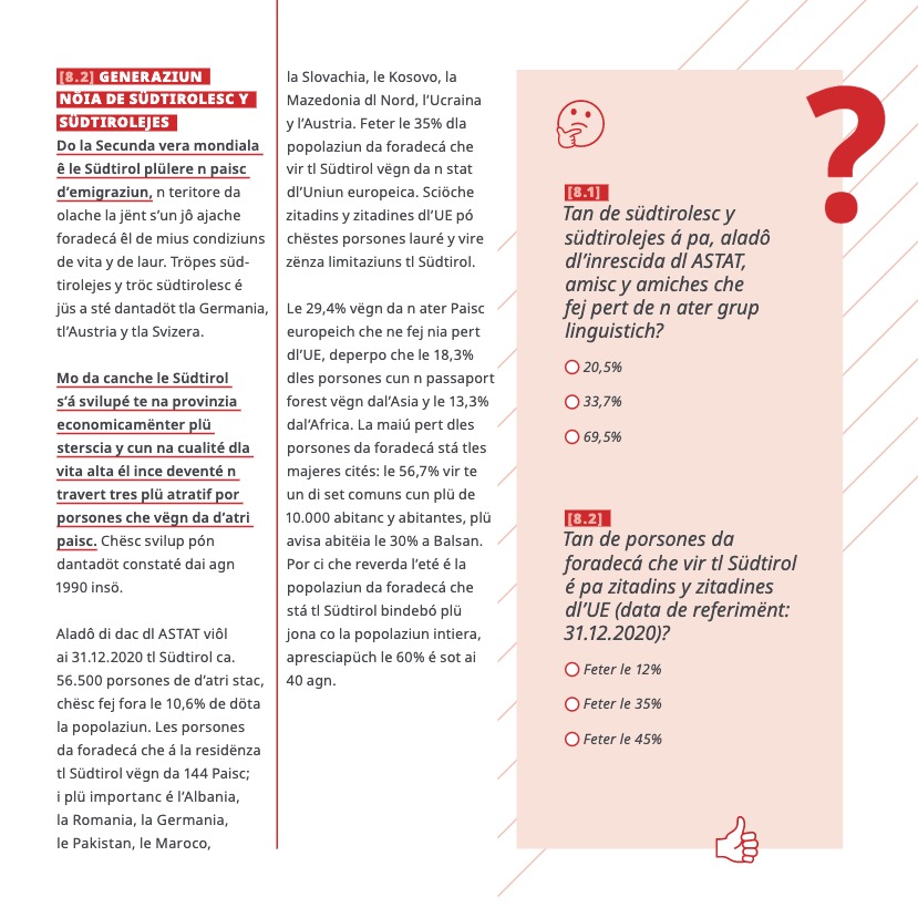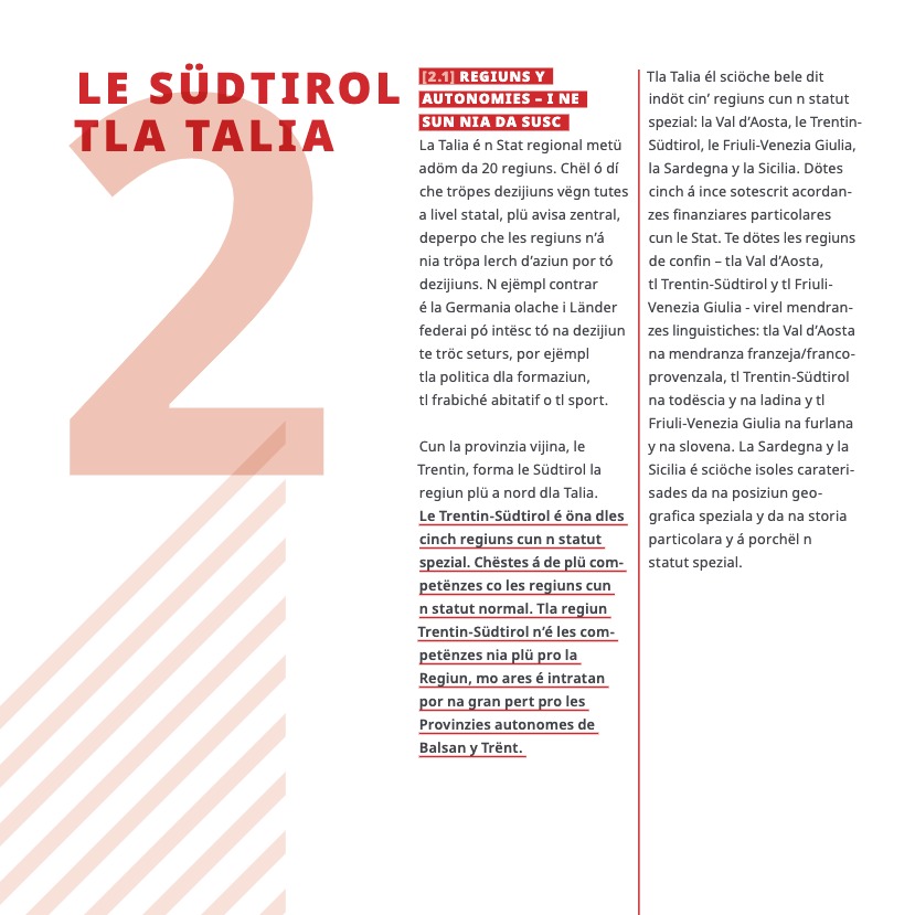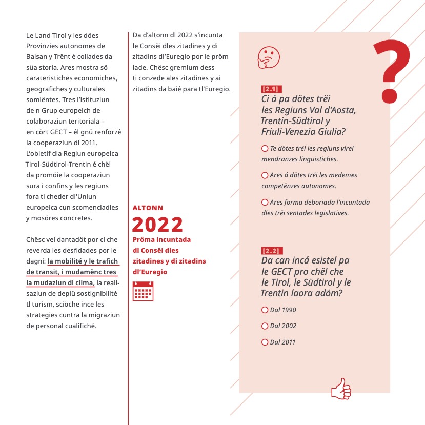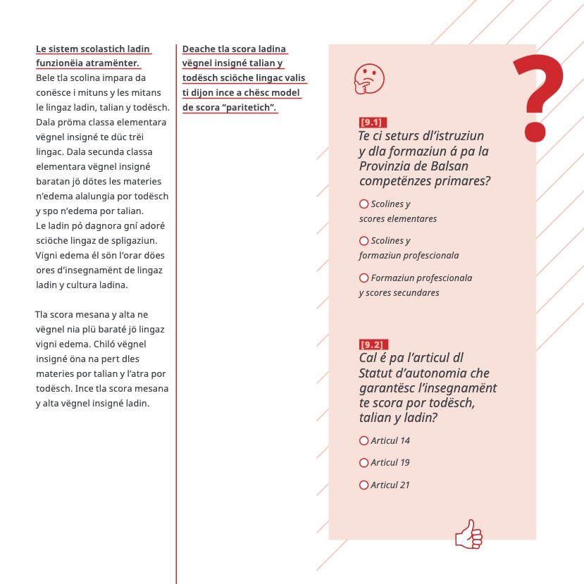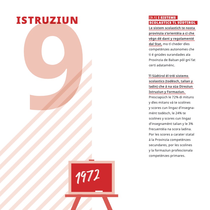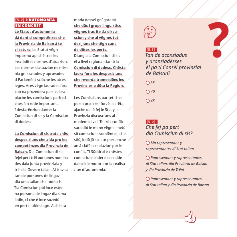 - Por l’aniversar di 50 agn dl secundo Statut d’autonomia mët a jí la Provinzia autonoma de Balsan en colaboraziun cun l’Eurac Center for Autonomy Experience y la Fondaziun Cassa dl Sparagn dl Südtirol le concurs “Conësceste tüa provinzia”.