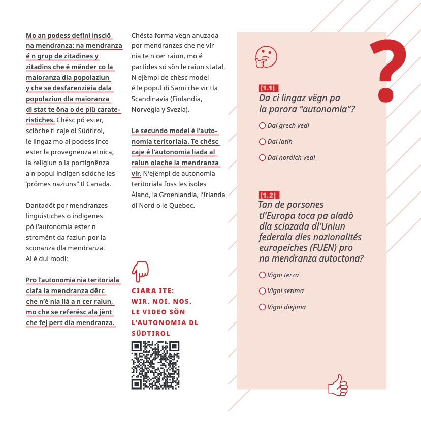 - Al scomenciamënt dla scora ciafa les scolares y i scolars na brosciüra sön la tematica dl’ autonomia. Laite él 24 domandes multiple-choice y pro vignöna él trëi poscibilités de resposta. Pro...