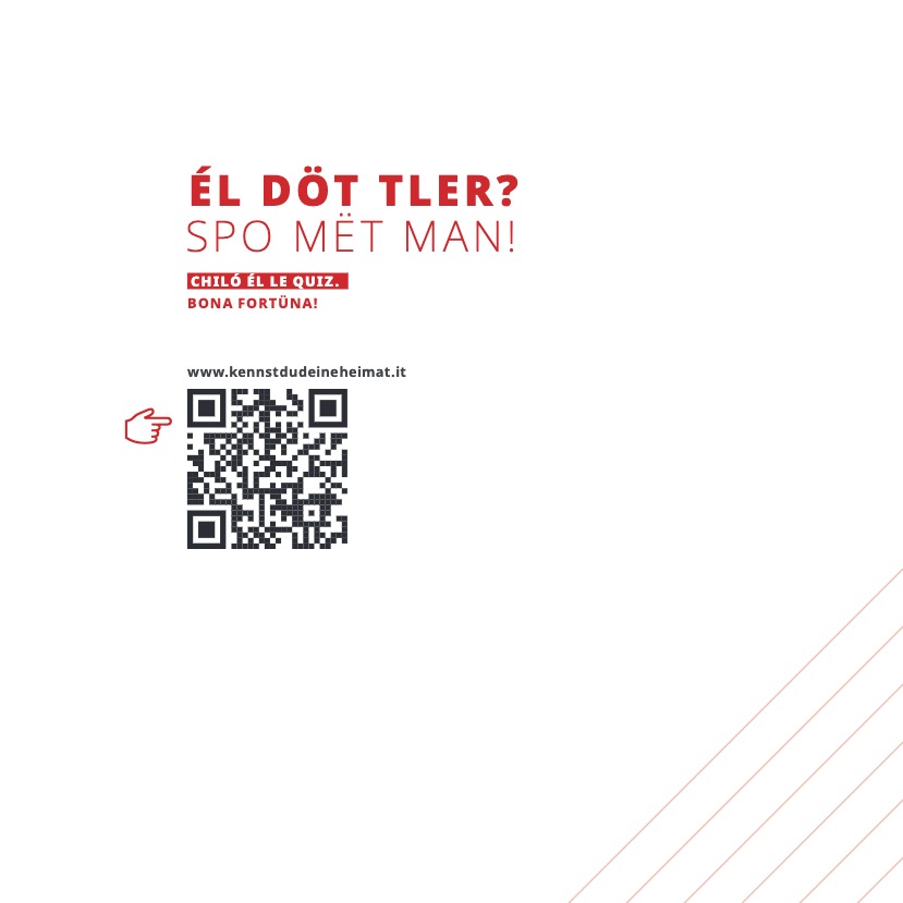 - Che che ó tó pert al jüch da pesć mëss se scrí ite sot a www.kennstdudeineheimat.it. Pro l’iscriziun él da dé dant o chirí fora chisc dac: inom, cognom, data de nasciüda, paisc dla scora, sort de scora, classa (p.ej. 3F) y e-mail de contat.